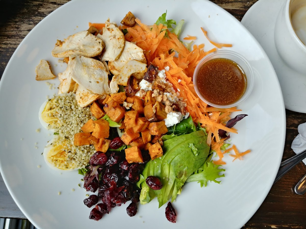 Cute cafe to drop by, and I have some tea coffee. Grab a bite to eat or some patisserie. Close to high park. It's walking distance. We got a table, no problem. But it did pick after 10 mins. We ordered two sald roughly, which cost us $15.80, which was worth it. The Power Bowl was amazing. I enjoy every single bite. Service was good, and the place was cleaned and tidy.
